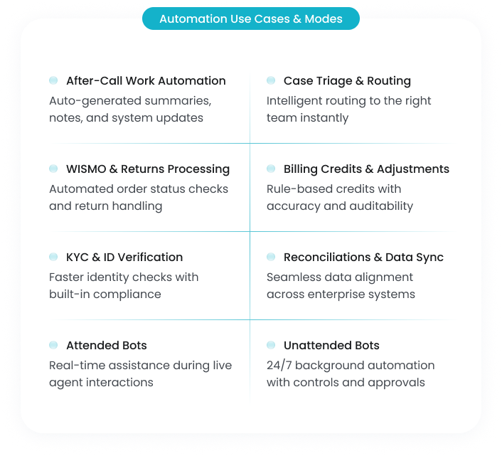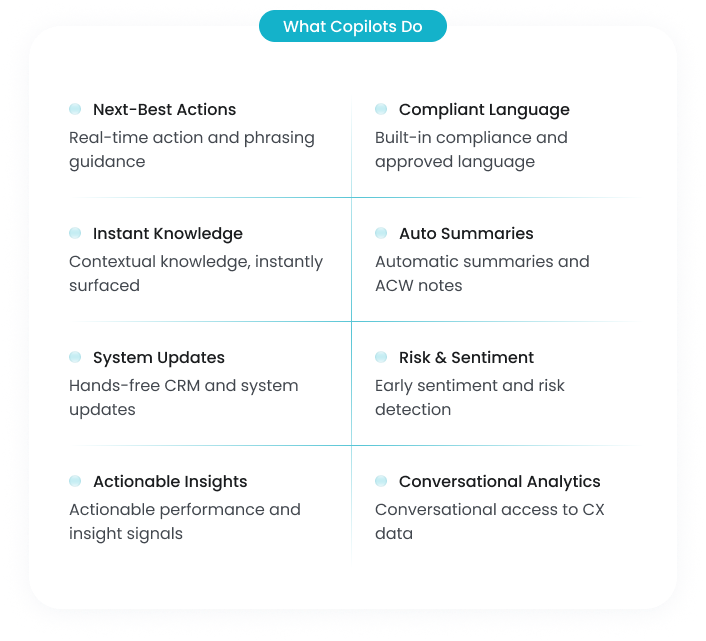 One platform. Copilots that elevate people. Automation that scales everywhere. Let’s design a smarter, seamless operation for your customers, your teams, and your business.